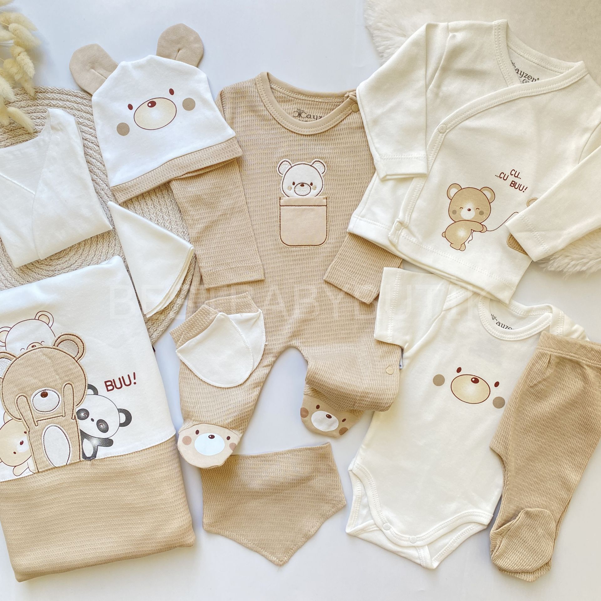 BEAR SEVİMLİ AYICIK DETAYLI JAKARLI 10 PARÇA HASTANE ÇIKIŞI SETİ